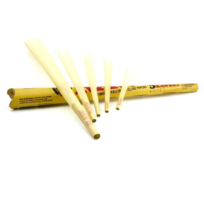 The RAW RAWKET PRE-ROLLED CONES ae a simple way to make a smoke session extra special. A Combination of 5 Different Sized Cones from 1 1/4 up to Gigantic Supernatural sized cones that measure in at 12″ long, you’ll have the perfect cone for any situation!