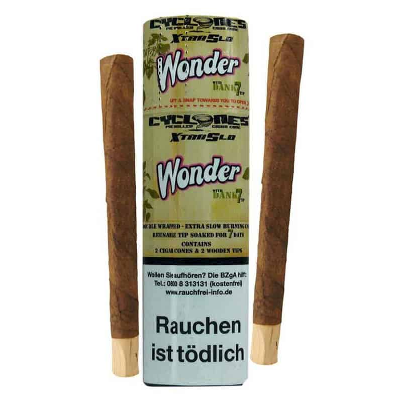 Say hello to tobacco-free blunts! The Cyclone Pre-Rolled Hemp Blunt Wraps are made from organic Hemp Fibers so you can enjoy the extra slow burning and extend your smoke session! With no chemicals, additives or glue these cheap pre-rolled blunts come with a Re-usable Wooden Tip that has been soaked in flavor. Set the mood with some chill music with a nice beverage and enjoy the fruity notes this pre-rolled cone will give to your weed!